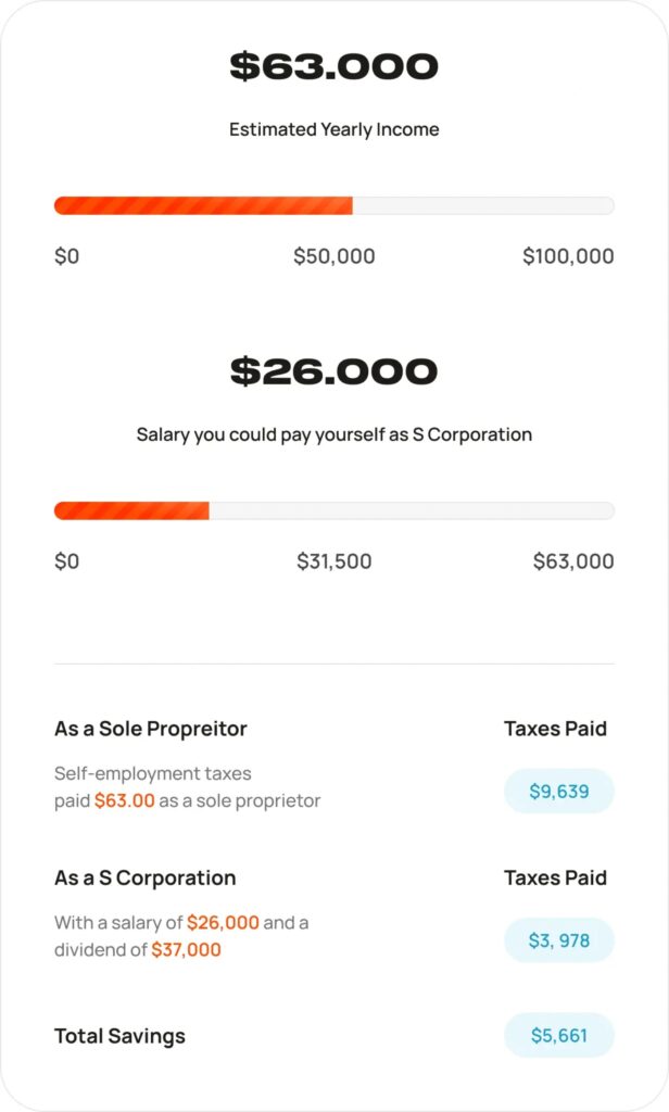 Use our S Corporation Tax Calculator to view your potential tax savings.
